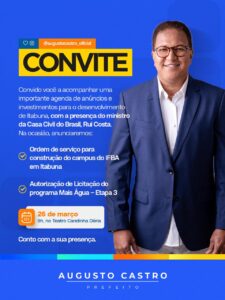 Além disso, o governo federal dará início à autorização da licitação da terceira etapa do programa Mais Água, iniciativa voltada para melhorar o abastecimento no sul da Bahia. O evento reúne autoridades estaduais, municipais e representantes da sociedade civil para oficializar os repasses e dar início aos trâmites que viabilizam as novas obras.