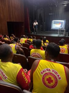 Na última quinta-feira (14), a Prefeitura de Ilhéus realizou um treinamento para salva-vidas e agentes de segurança que atuarão na etapa do Campeonato Brasileiro de Triathlon, marcada para 13 de setembro. O evento, organizado pela Secretaria de Ordem Pública, ocorreu no Teatro Municipal e capacitou guardas municipais, agentes de trânsito e salva-vidas.